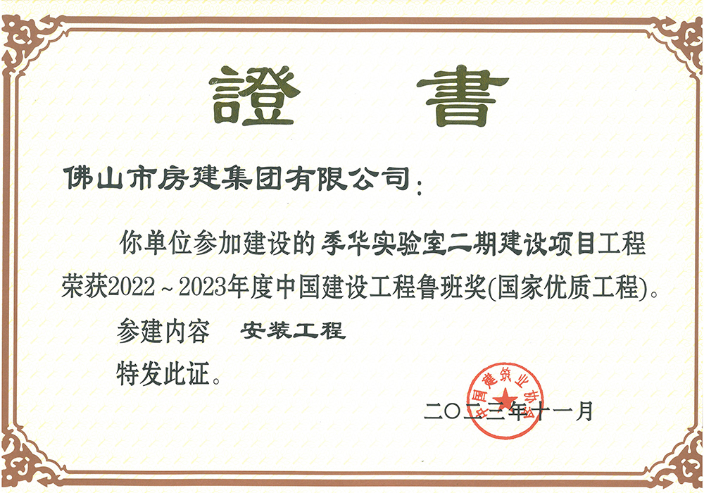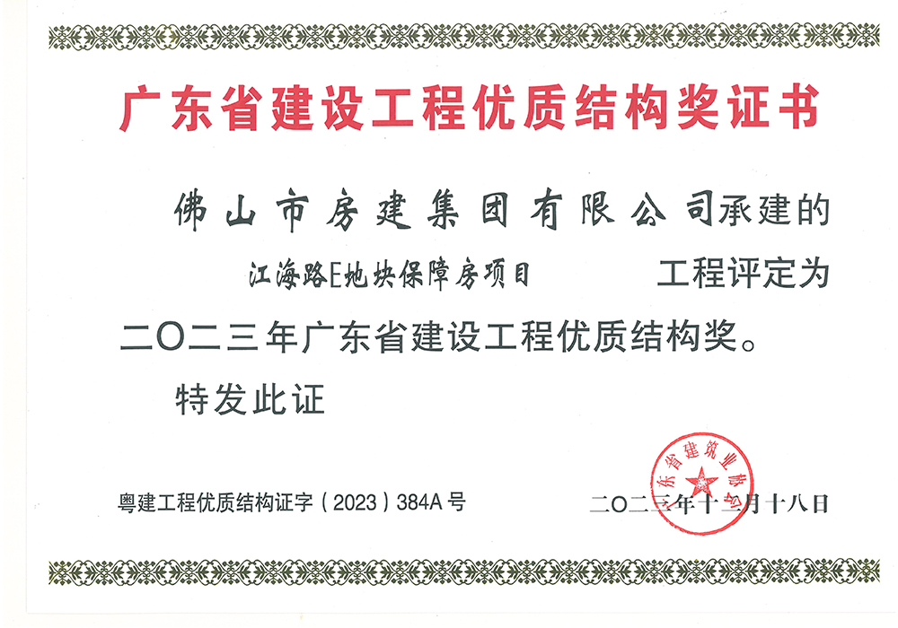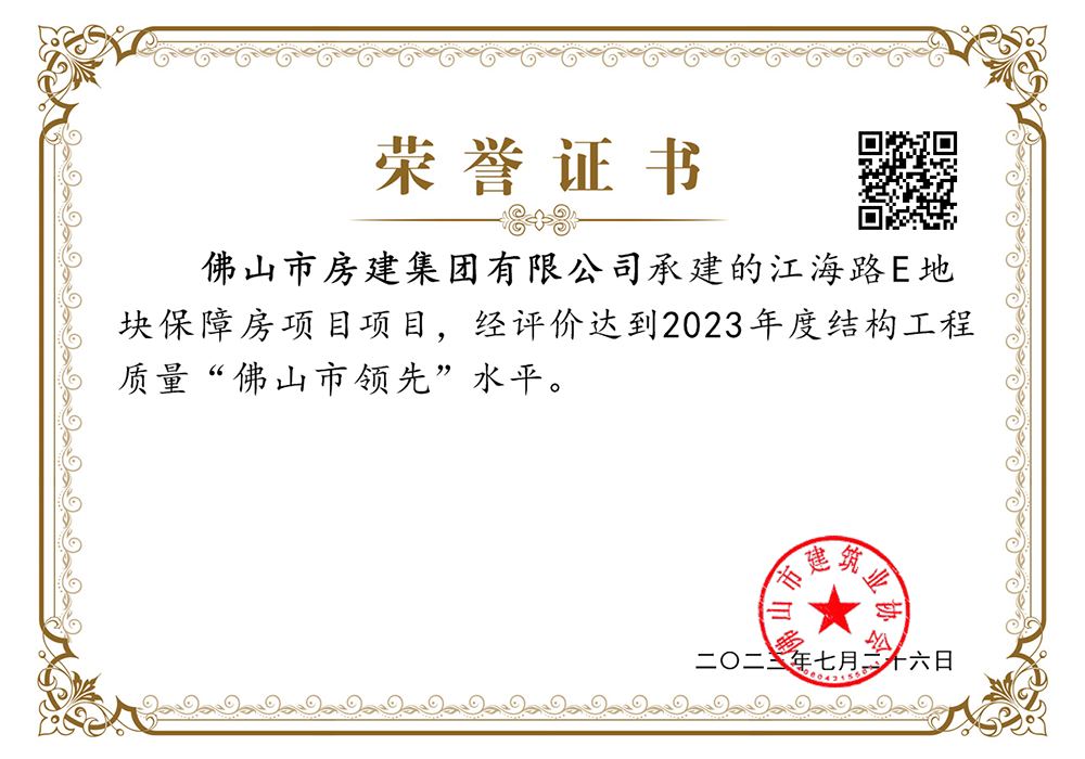 结构工程质量“佛山市先进”水平