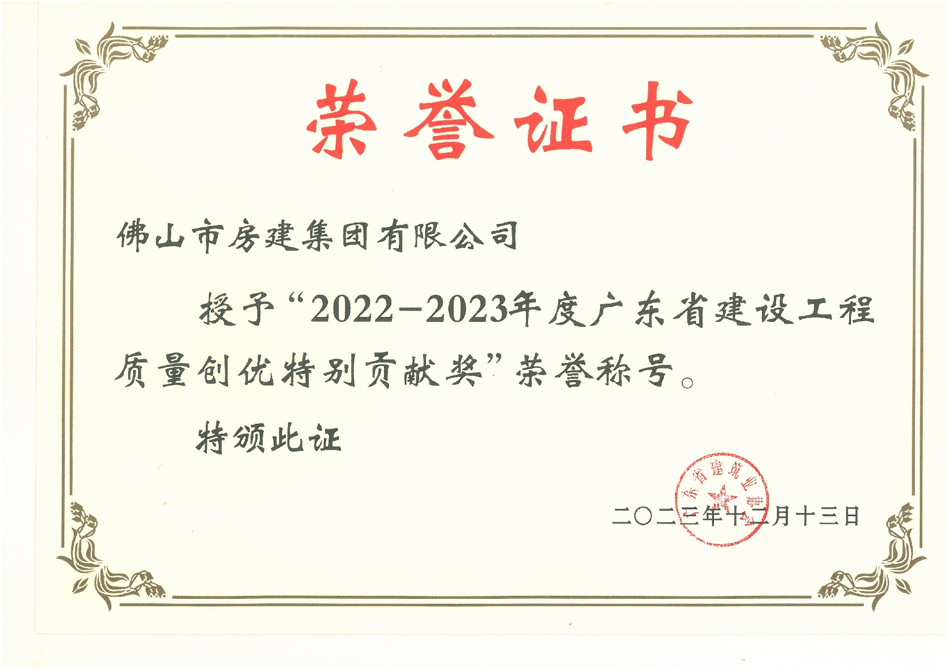 2023年度佛山市优质建筑业企业
